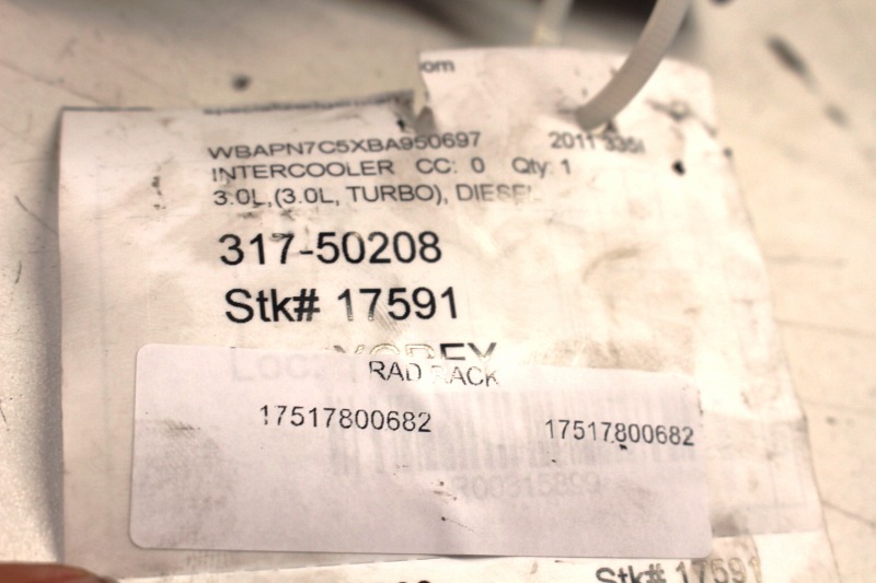 Specialized German is proud to offer this genuine used OEM 2011 BMW Intercooler with OEM part number 17517800682.