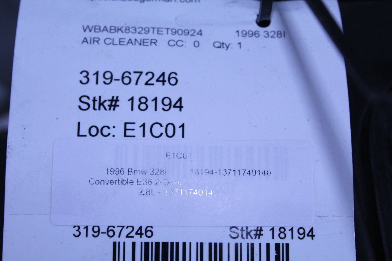 Specialized German is proud to offer this genuine used OEM 1996 BMW Air Filter Housing with OEM part number 13711740140. Other possible part numbers include 1740140. Please verify compatibility with your VIN or consult your technician before purchase.