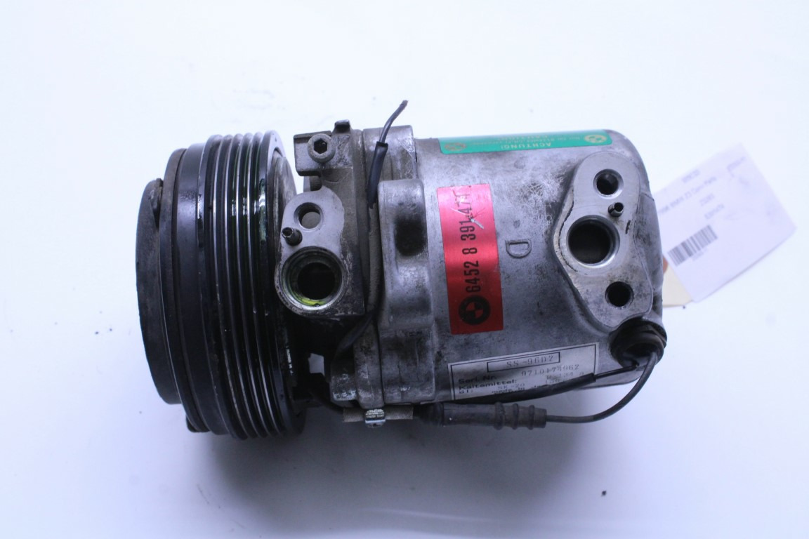 Specialized German is proud to offer this genuine used OEM 1998 BMW A/C compressor with OEM part number 64528391474.