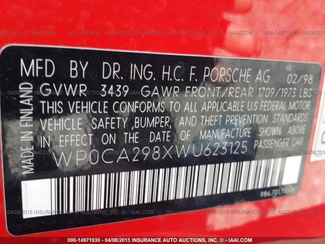 Specialized German is now dismantling this 1998 Porsche Boxster for high-quality OEM used parts. Sourced from clean, rust-free California inventory, all major components are inspected and tested.