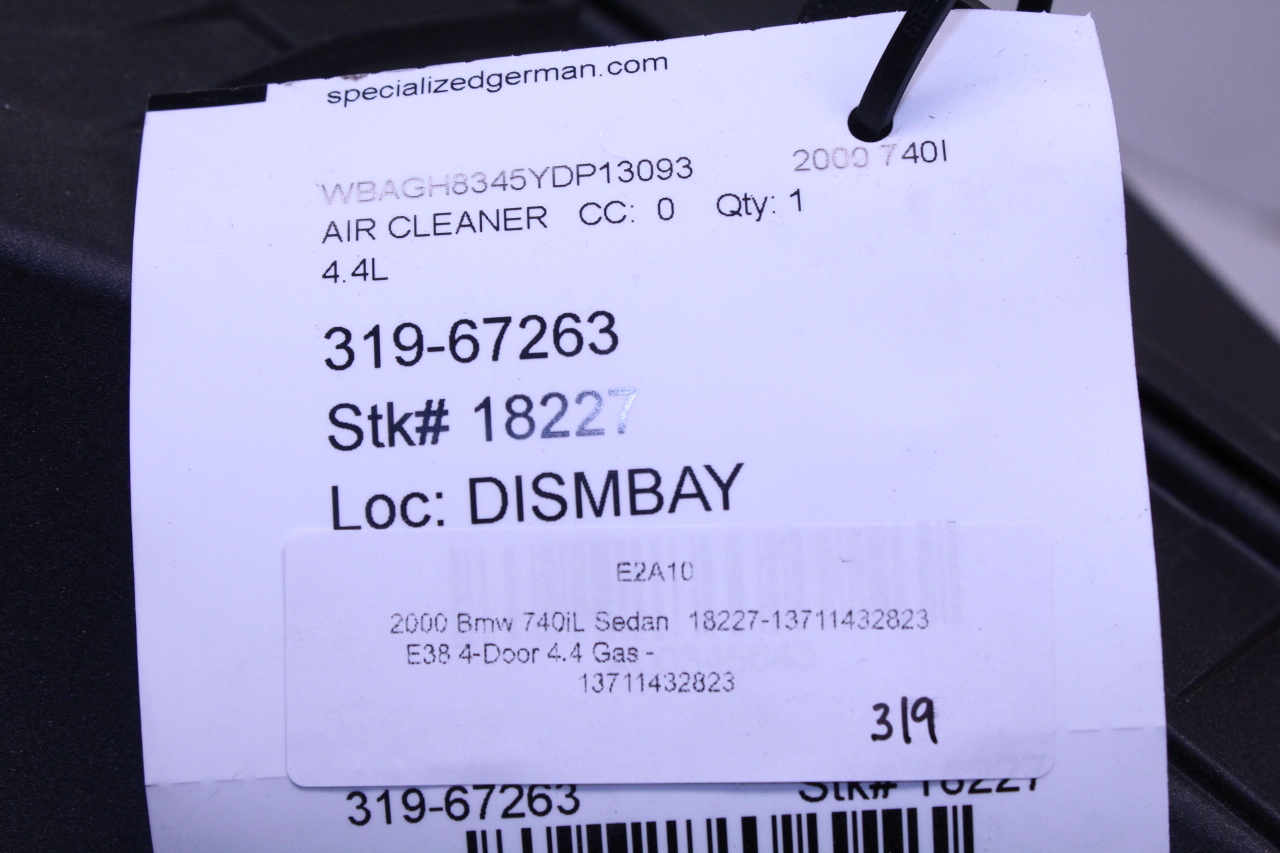 Specialized German is proud to offer this genuine used OEM 2000 BMW Air Filter Housing with OEM part number 13711432823. Other possible part numbers include 1432823. Please verify compatibility with your VIN or consult your technician before purchase.