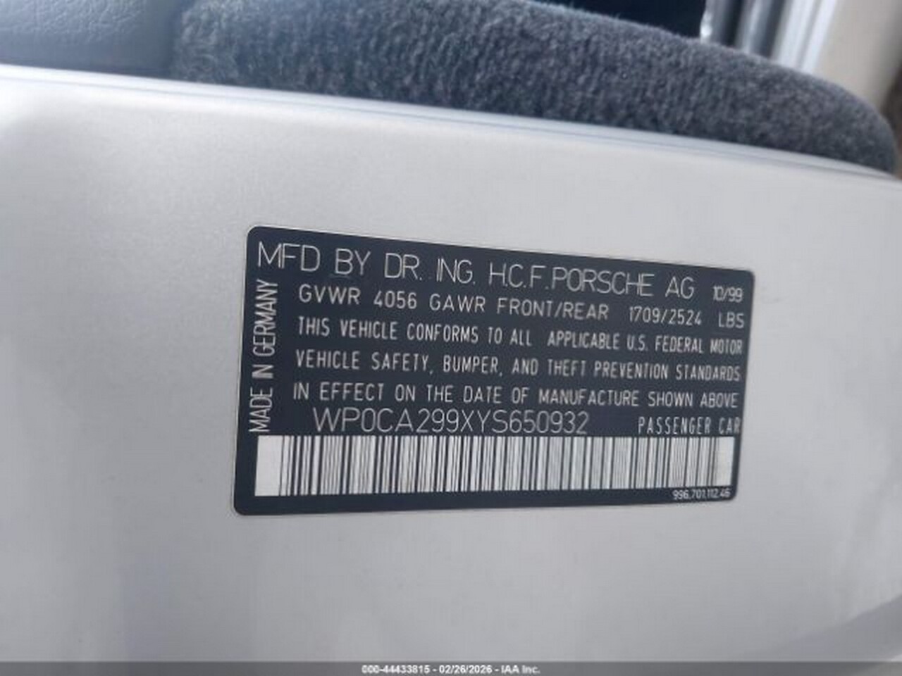 Now dismantling at our Rancho Cordova facility. This 996.1 Cabriolet features a low-mileage powertrain and premium OEM components from a rust-free California car. Expertly dismantled and inspected by specialists with 25+ years of experience.