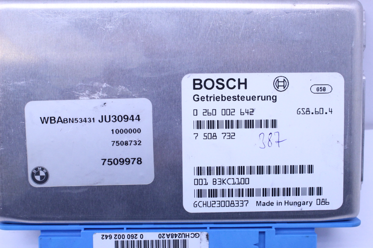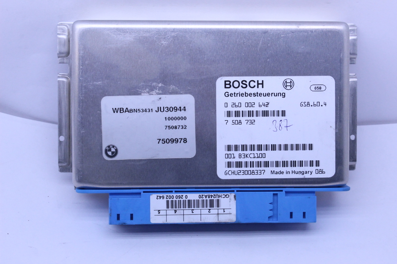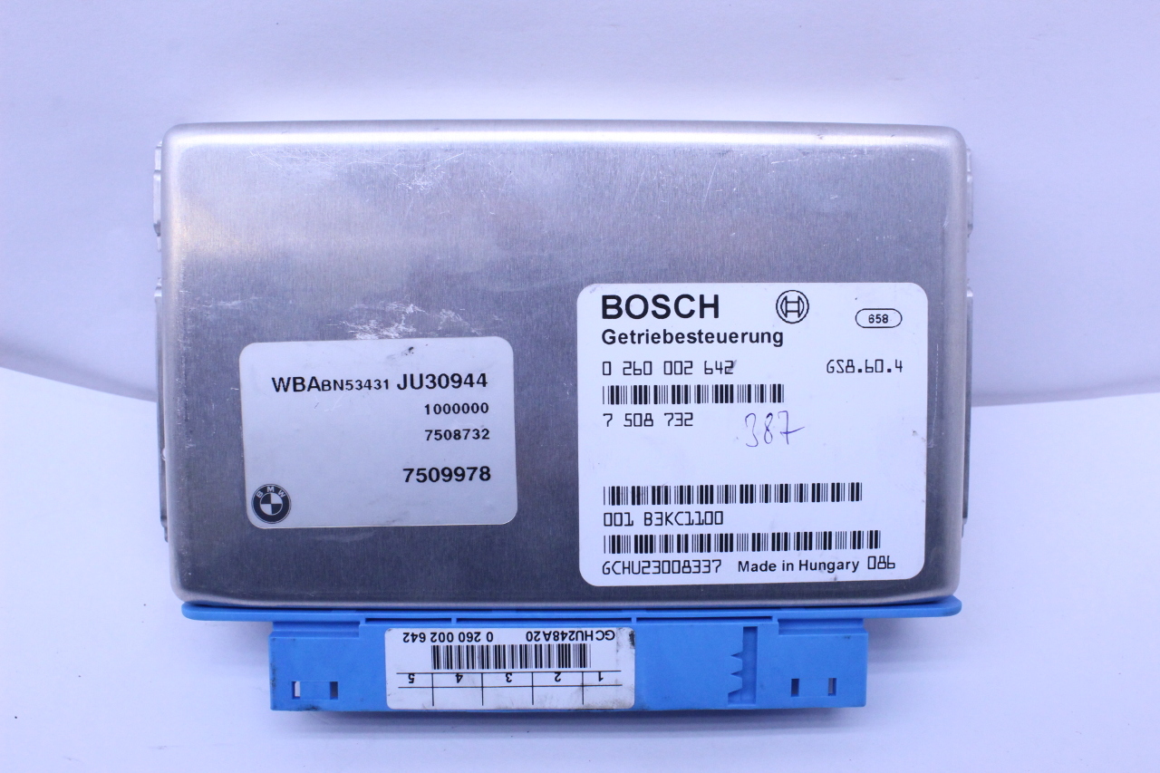 Specialized German is proud to offer this genuine used OEM 2001 BMW Transmission Control Module with OEM part number 24607509978. Other possible part numbers include 7509978. Please verify compatibility with your VIN or consult your technician before purchase.