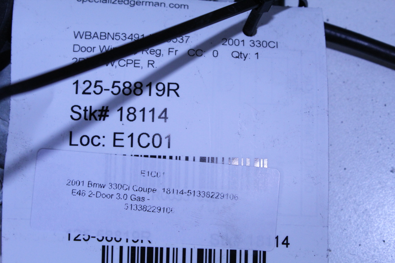 Specialized German is proud to offer this genuine used OEM 2001 BMW Door Window Regulator with OEM part number 51338229106. Other possible part numbers include 8229106. Please verify compatibility with your VIN or consult your technician before purchase.