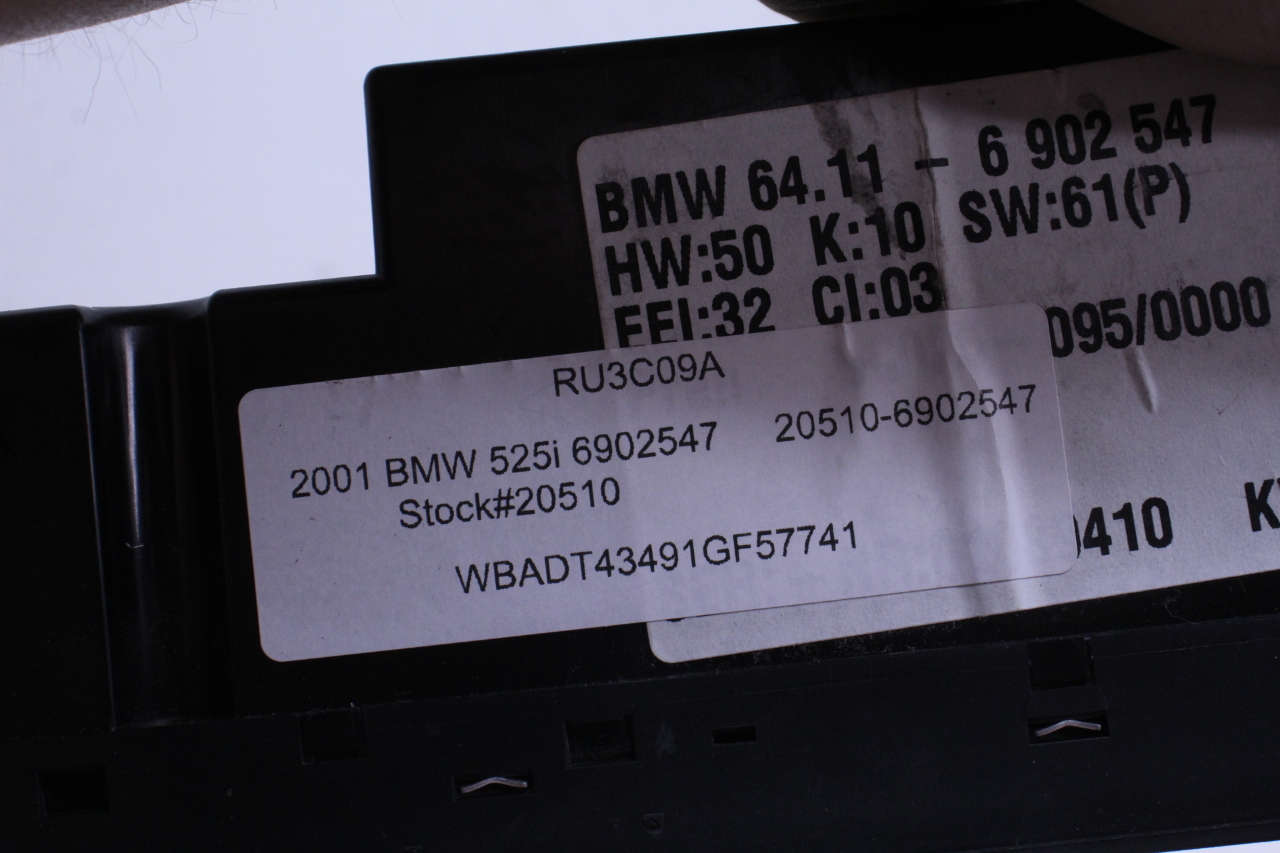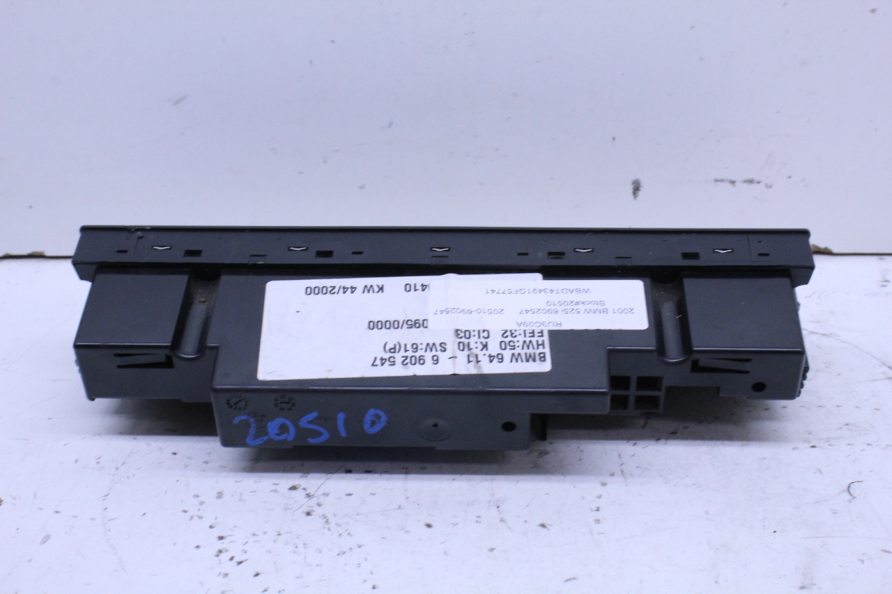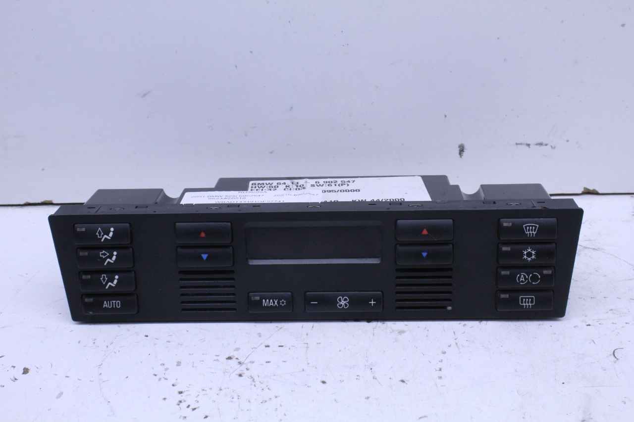 Specialized German is proud to offer this genuine used OEM 2001 BMW Temperature Control Panel with OEM part number 64116902547. Other possible part numbers include 6902541; 6902547; 6916641; 64116916641. Please verify compatibility with your VIN or consult your technician before purchase.