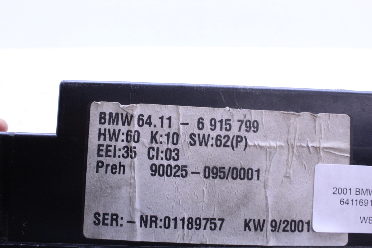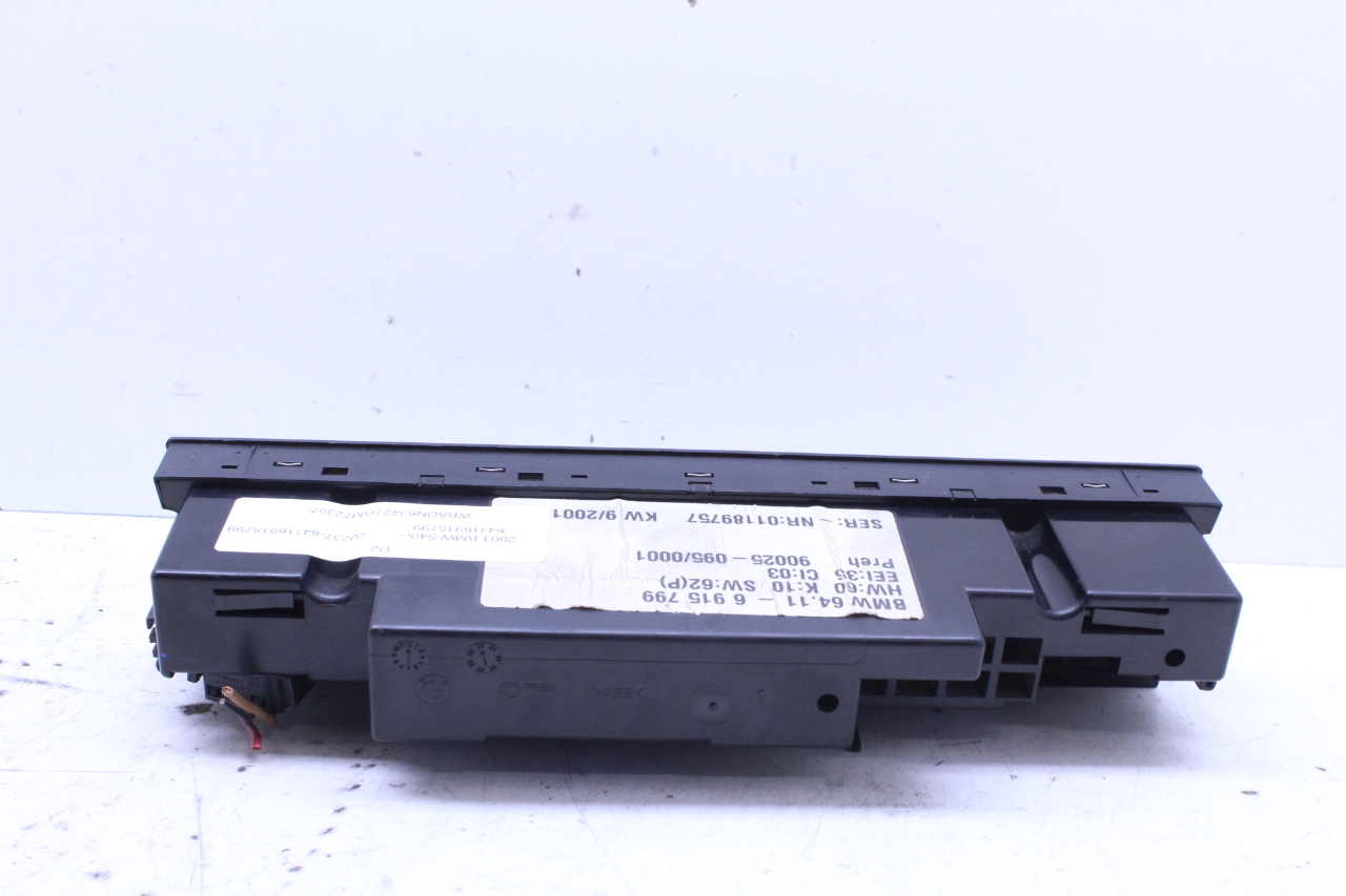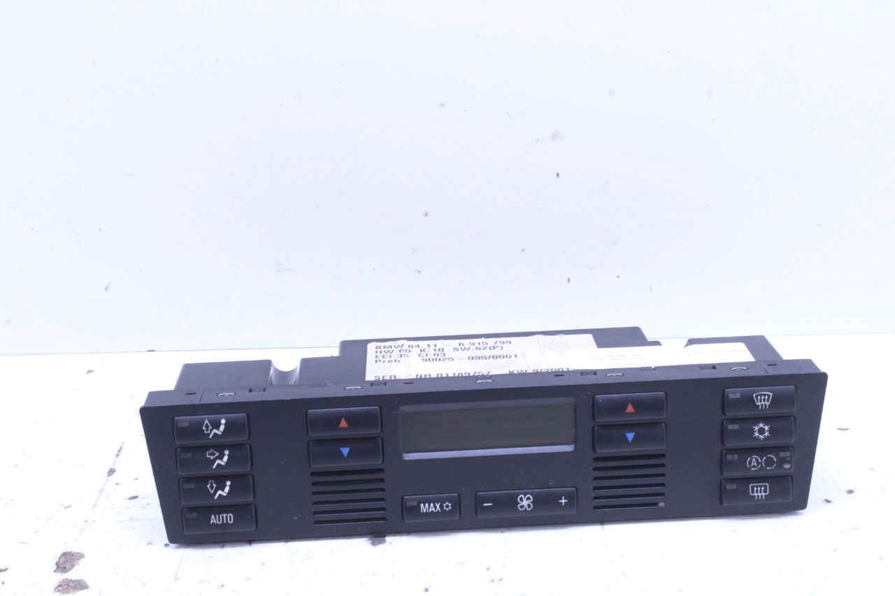 Specialized German is proud to offer this genuine used OEM 2001 BMW Temperature Control Panel with OEM part number 64116915799. Other possible part numbers include 6915799; 64116915799; 64116916641. Please verify compatibility with your VIN or consult your technician before purchase.