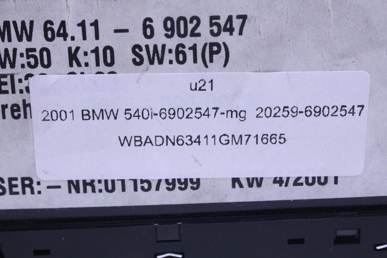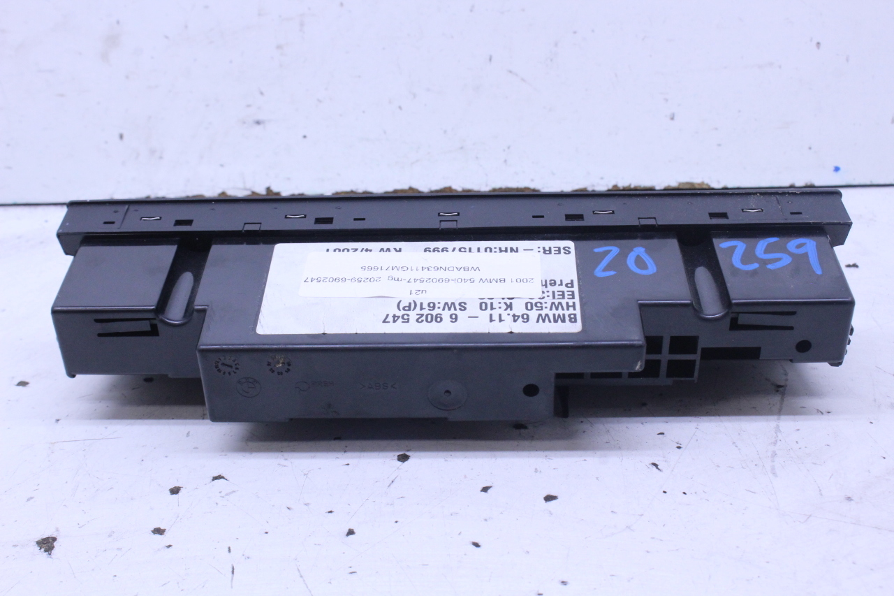 Specialized German is proud to offer this genuine used OEM 2001 BMW Temperature Control Panel with OEM part number 64116902547. Other possible part numbers include 6902541; 6902547; 6916641; 64116916641. Please verify compatibility with your VIN or consult your technician before purchase.