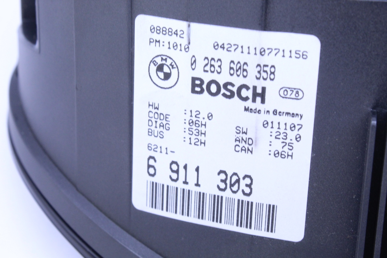 Specialized German is proud to offer this genuine used OEM 2002 BMW Speedometer with OEM part number 62116911303.