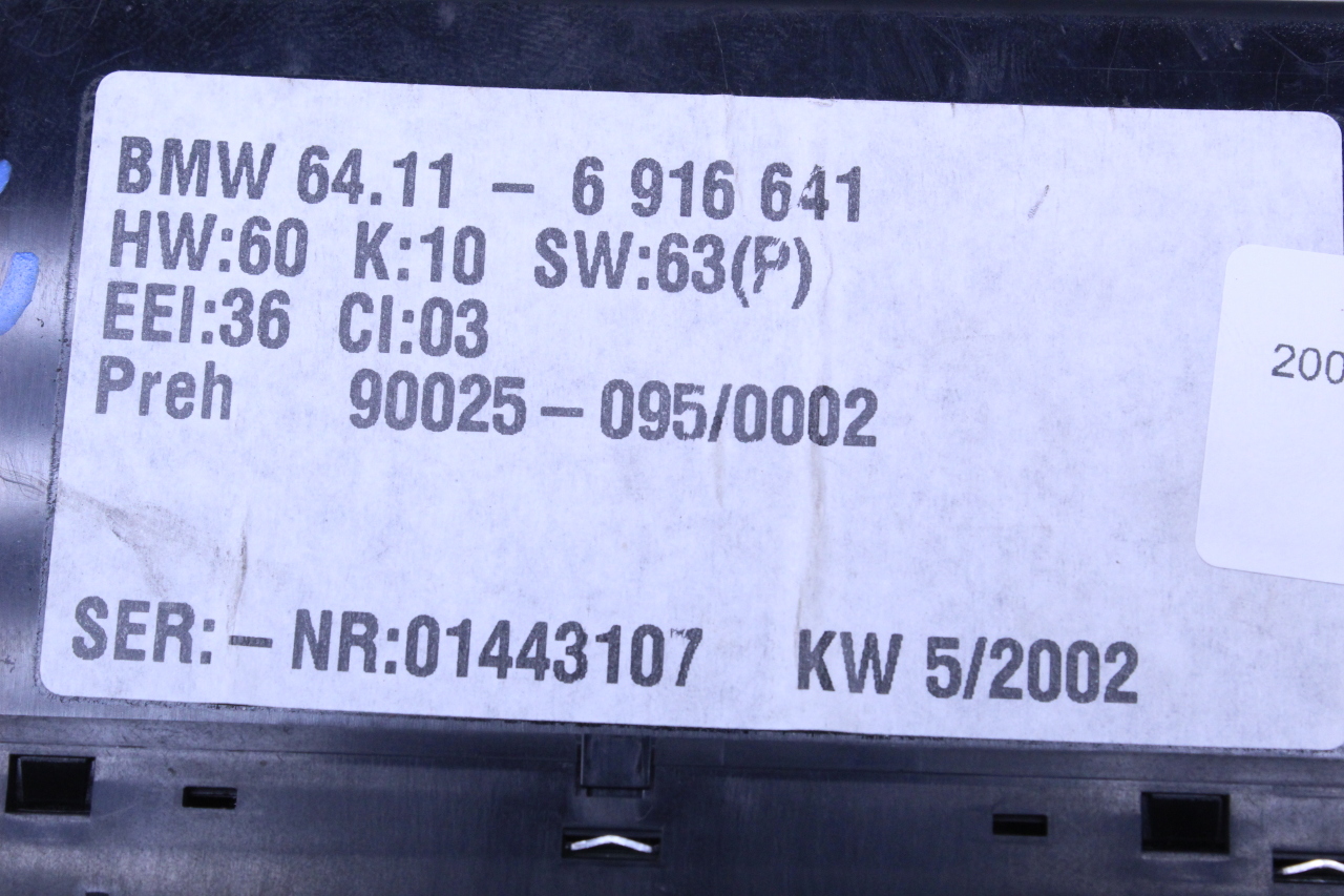 Specialized German is proud to offer this genuine used OEM 2002 BMW Temperature Control Panel with OEM part number 64116916641. Other possible part numbers include 6902541; 6902547; 6916641; 64116916641. Please verify compatibility with your VIN or consult your technician before purchase.