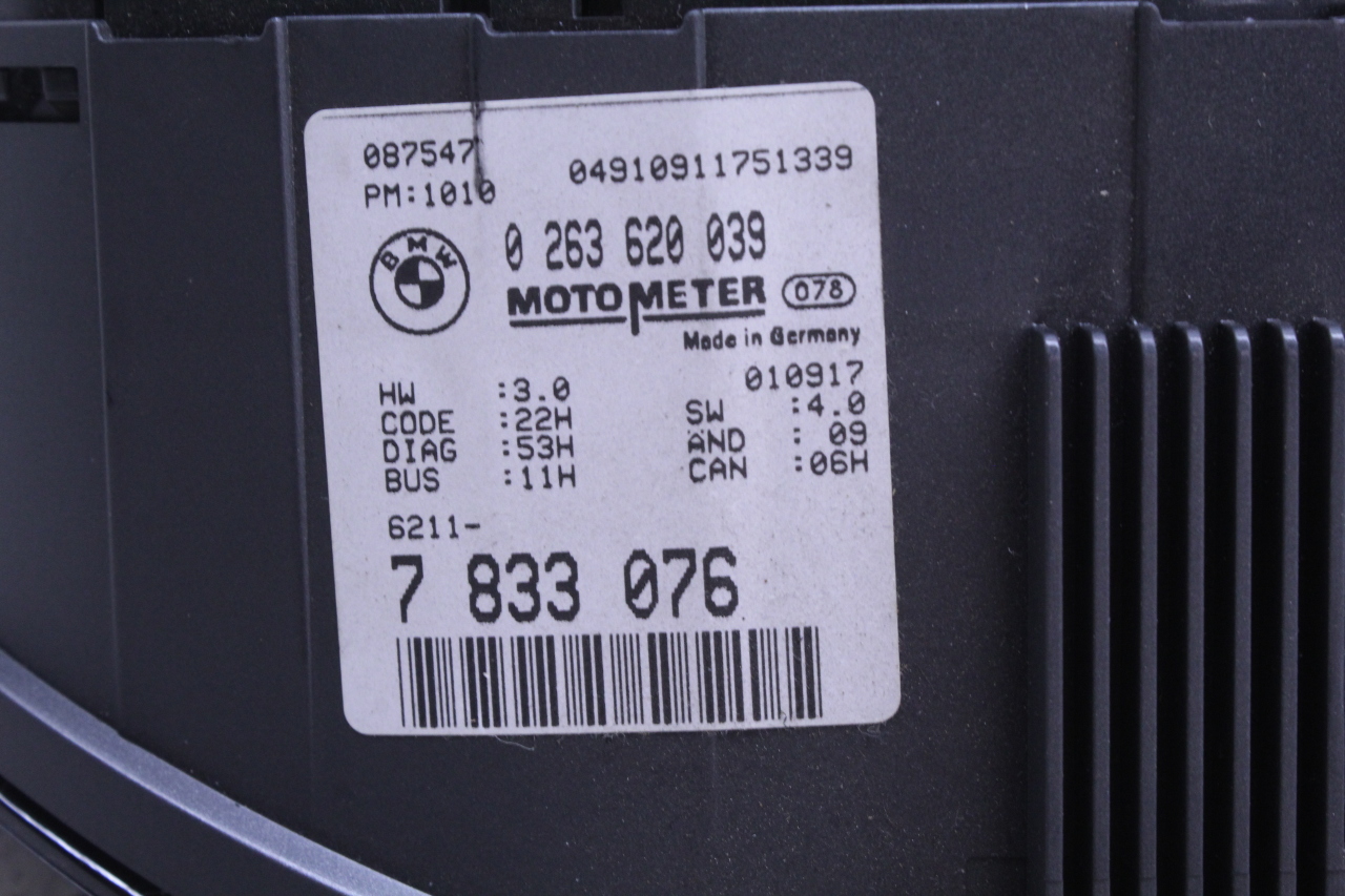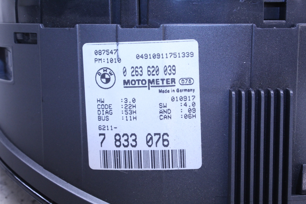 Specialized German is proud to offer this genuine used OEM 2002 BMW Speedometer with OEM part number 62117833076.