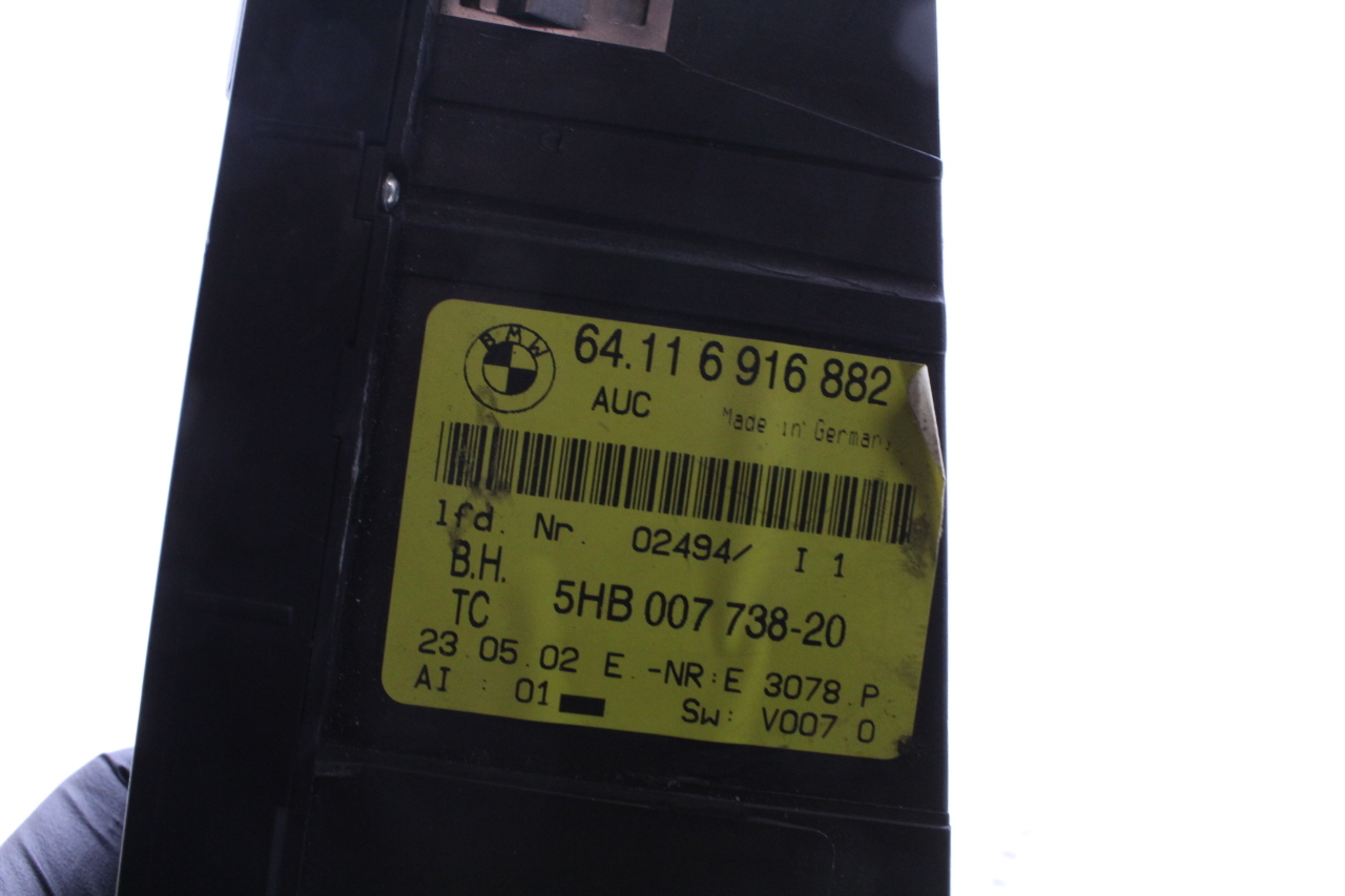 Specialized German is proud to offer this genuine used OEM 2002 BMW Temperature Control Panel with OEM part number 64116916882. Other possible part numbers include 6916882; 64116916882; 64116956319. Please verify compatibility with your VIN or consult your technician before purchase.