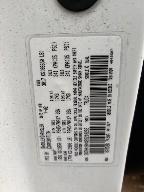 2: Model Year 2002 D: Dodge 7: Truck Without Side Air Bags "CGS" H: 6001-7000#(2722-3175kg) GVWR & Hyd. Brakes A: Ram Pickup 4x2 1: Dodge Ram Pick-up "1500" 8: Sport Utility 4 Dr./Quad Cab (Full Rear Doors) N: 4.7L V8 CYL Gasoline (EVA) X: Check Digit G: Saltillo Assembly (Saltillo, Mexico) Body Code: DR1L41 Engine: EVA ENGINE- 4.7L V8 MPI Transmission: DG4 TRANSMISSION-MULTI-SPEED AUTO, 45RFE Build Date: July 05, 2002 |