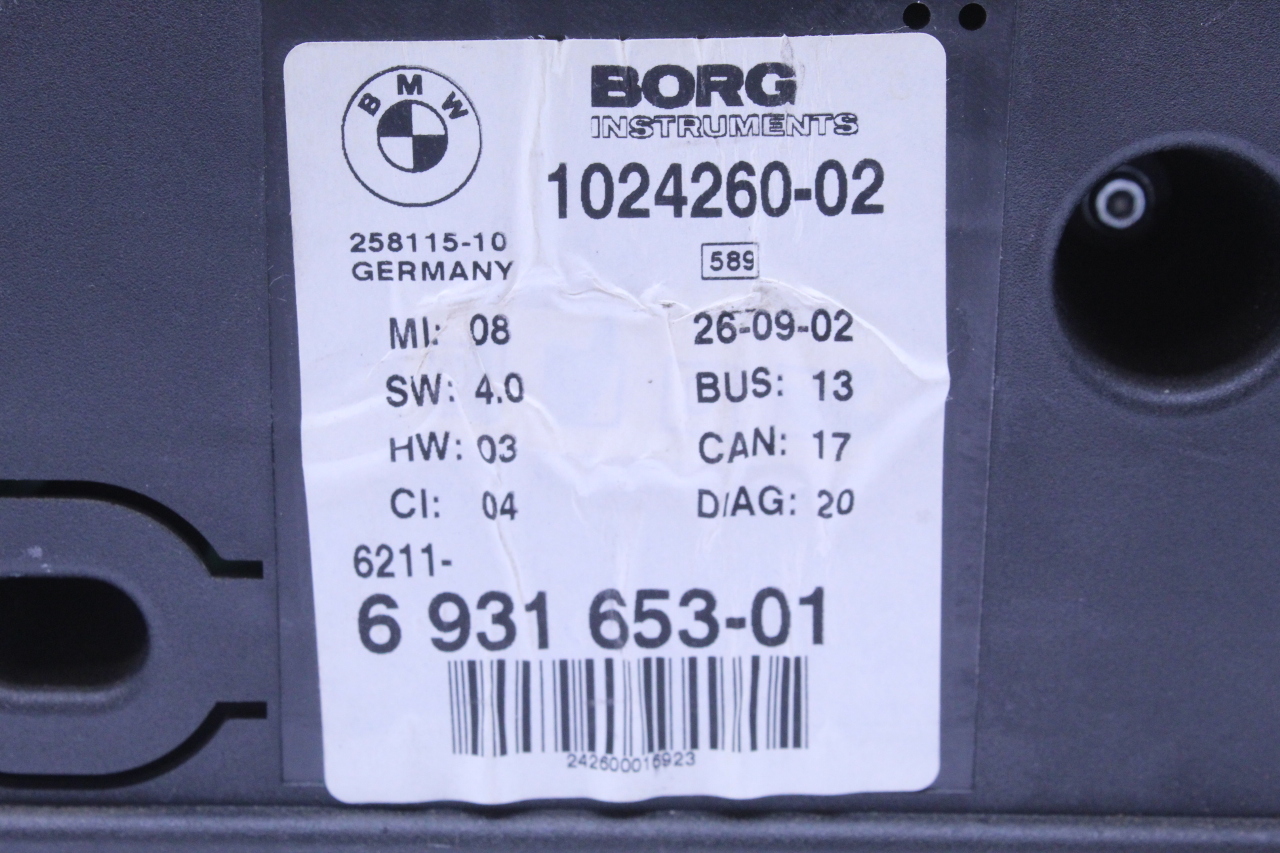 Specialized German is proud to offer this genuine used OEM 2003 BMW Speedometer with OEM part number 62116931653. Other possible part numbers include 6931653. Please verify compatibility with your VIN or consult your technician before purchase.