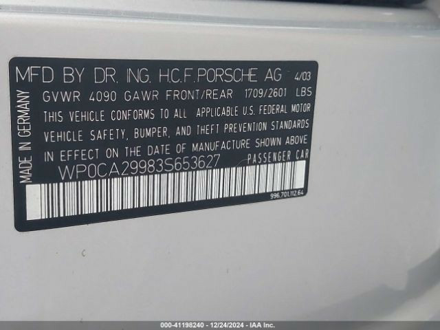 Specialized German is now dismantling this 2003 Porsche 911 for high-quality OEM used parts. Sourced from clean, rust-free California inventory, all major components are inspected and tested.