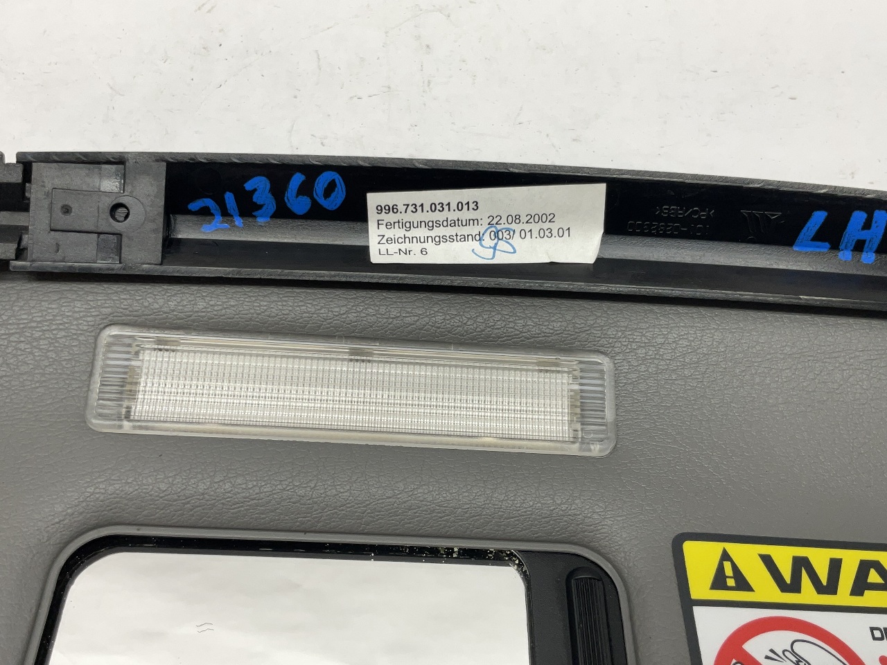2002 2003 2004 Porsche 911 996 Targa Sun Visor Left OEM