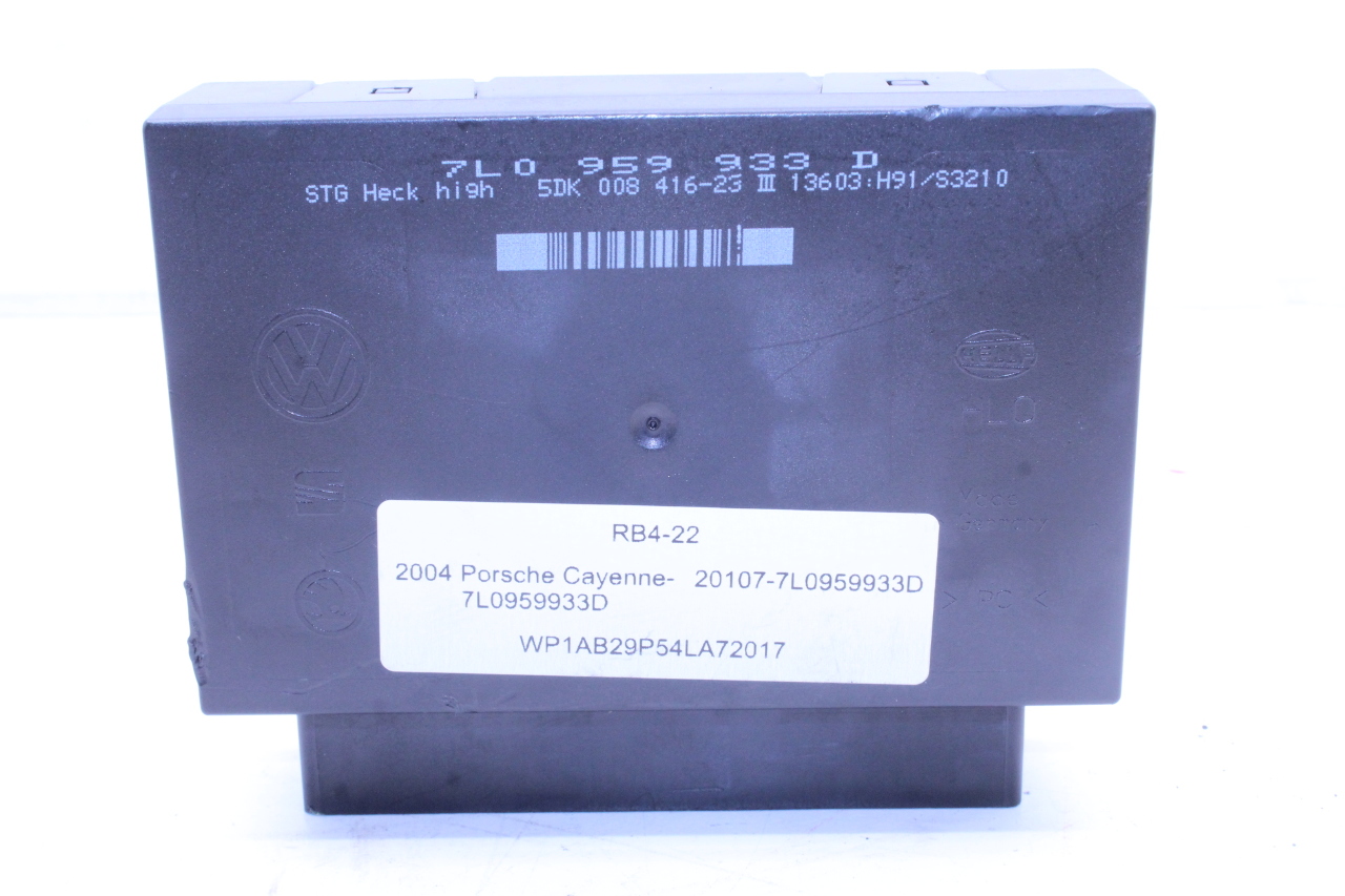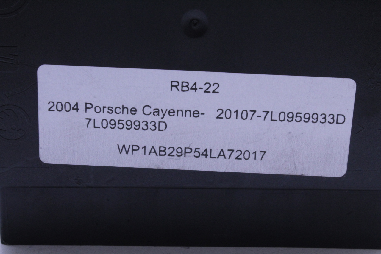 Specialized German is proud to offer this genuine used OEM 2004 Porsche Comfort Control Module with OEM part number 7L0959933D. Other possible part numbers include 7L0959933C; 7L0959933D; 7L0959933E; 7L0959933F; 7L0959933H. Please verify compatibility with your VIN or consult your technician before purchase.