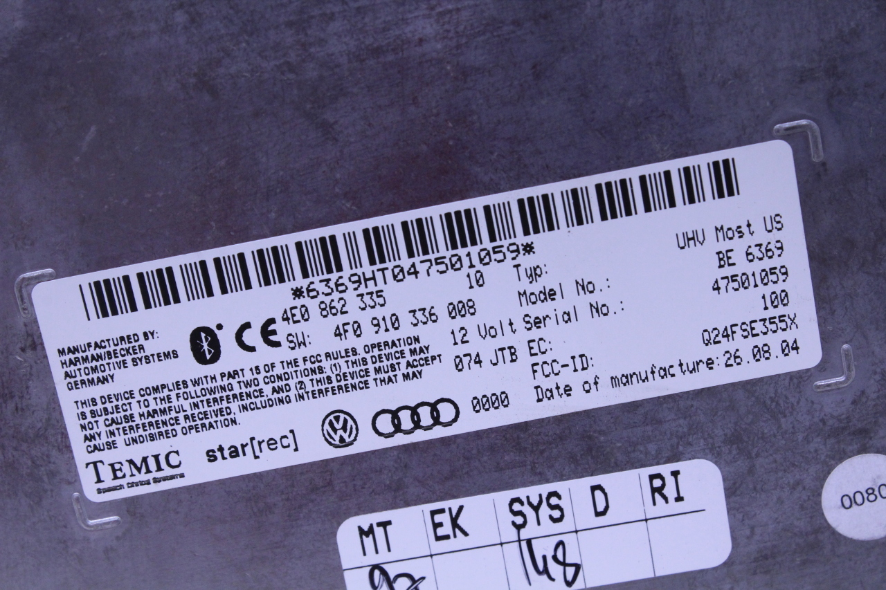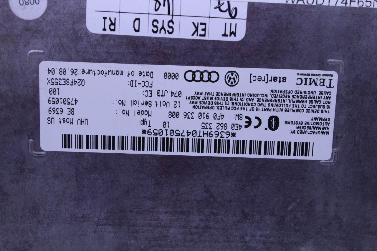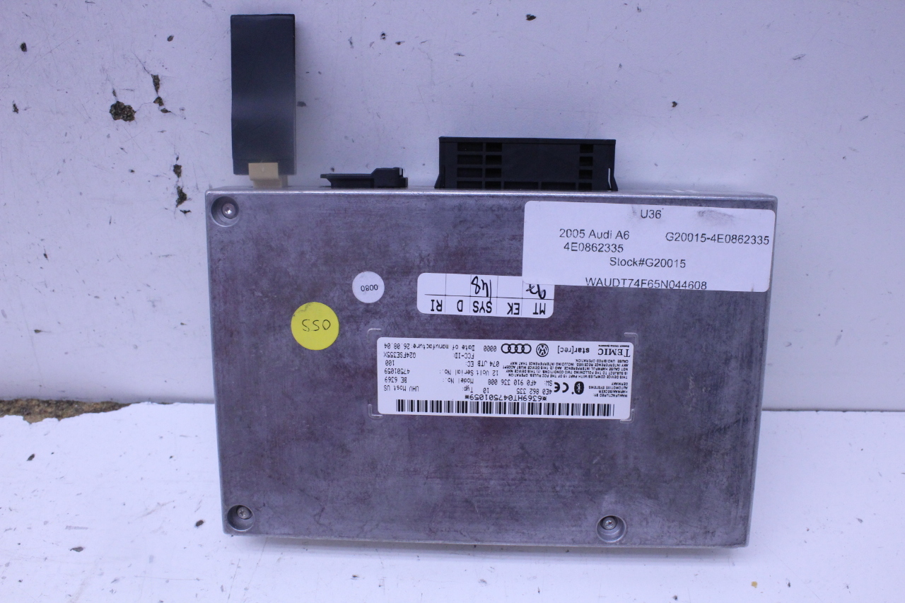 Specialized German is proud to offer this genuine used OEM 2005 Audi Bluetooth Control Module with OEM part number 4E0862335. Other possible part numbers include 4E0862335. Please verify compatibility with your VIN or consult your technician before purchase.