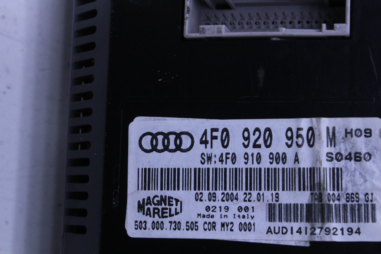 Specialized German is proud to offer this genuine used OEM 2005 Audi Speedometer with OEM part number 4F0920950M.