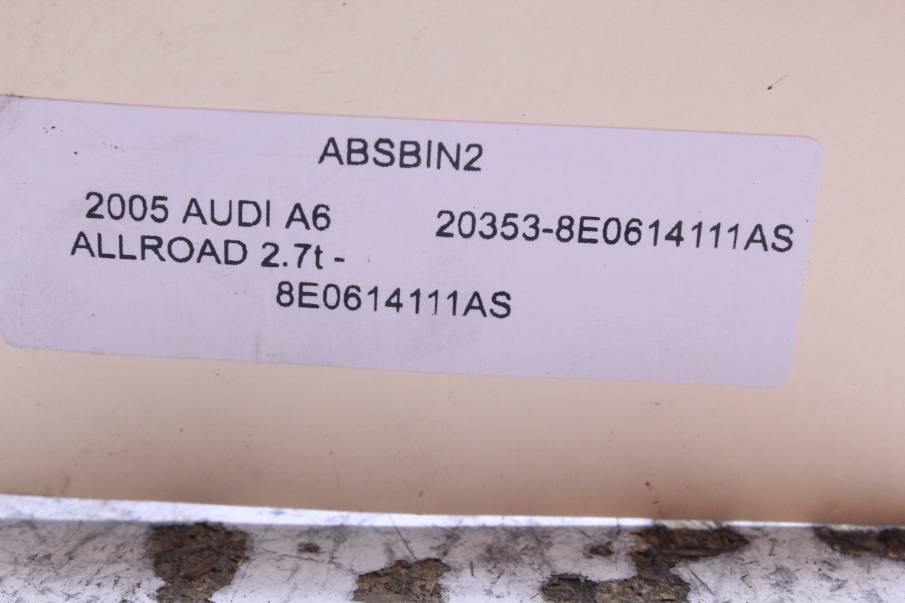 Specialized German is proud to offer this genuine used OEM 2005 Audi ABS Hydraulic Pump with OEM part number 8E0614111AS. Other possible part numbers include 8E0614111AS. Please verify compatibility with your VIN or consult your technician before purchase.