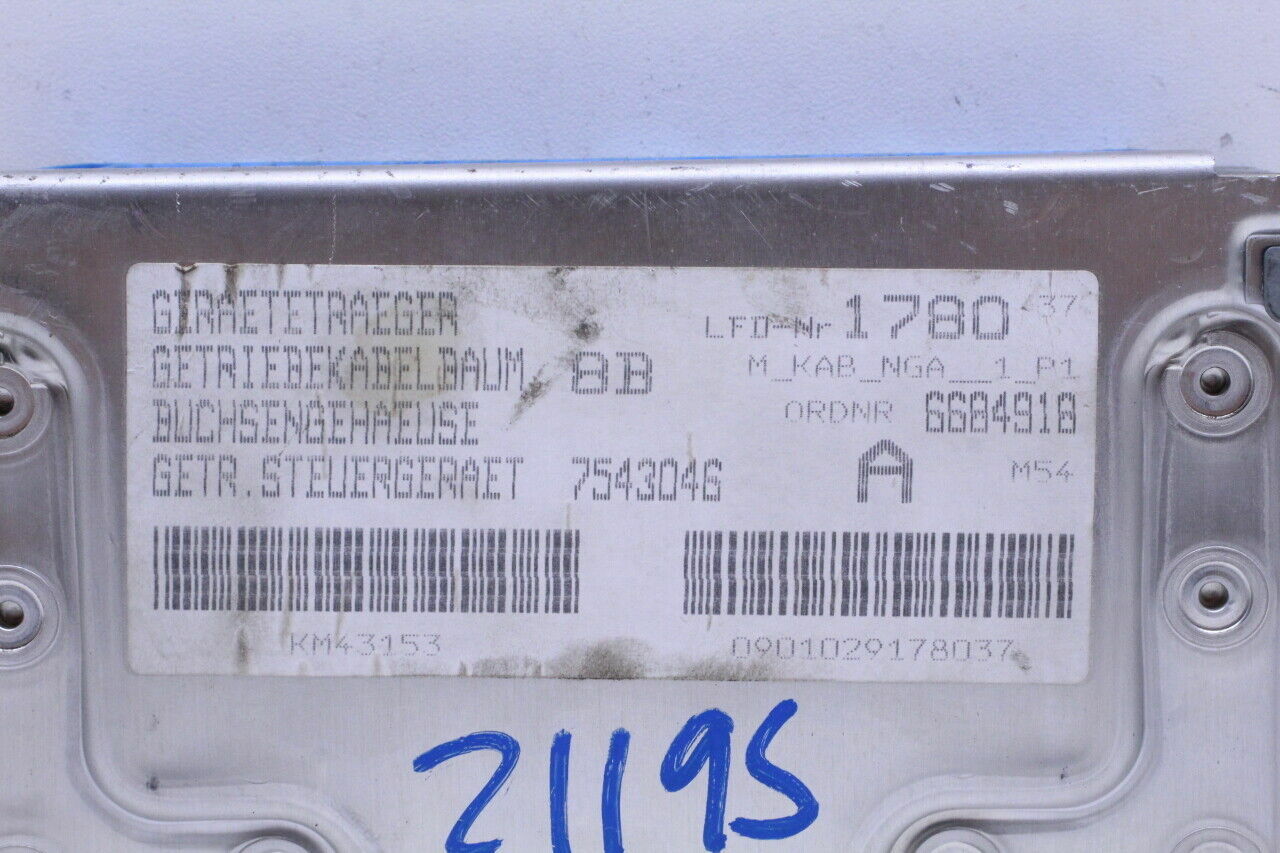 Specialized German is proud to offer this genuine used OEM 2005 BMW Transmission Control Module with OEM part number 24607543046. Other possible part numbers include 7544721; 7543046. Please verify compatibility with your VIN or consult your technician before purchase.