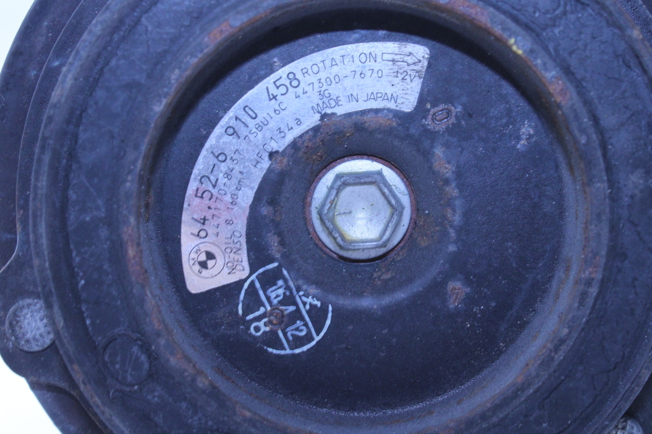 Specialized German is proud to offer this genuine used OEM 2005 BMW A/C compressor with OEM part number 64526910458. Other possible part numbers include 6910458; 64526910458. Please verify compatibility with your VIN or consult your technician before purchase.