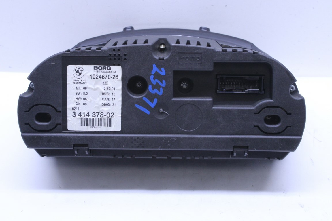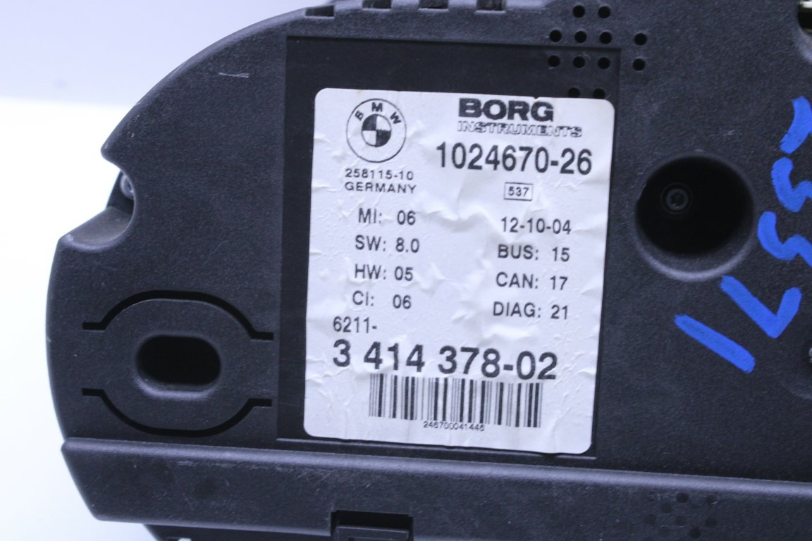 Specialized German is proud to offer this genuine used OEM 2005 BMW Speedometer with OEM part number 62113414378. Other possible part numbers include 3414378; 62113414378. Please verify compatibility with your VIN or consult your technician before purchase.