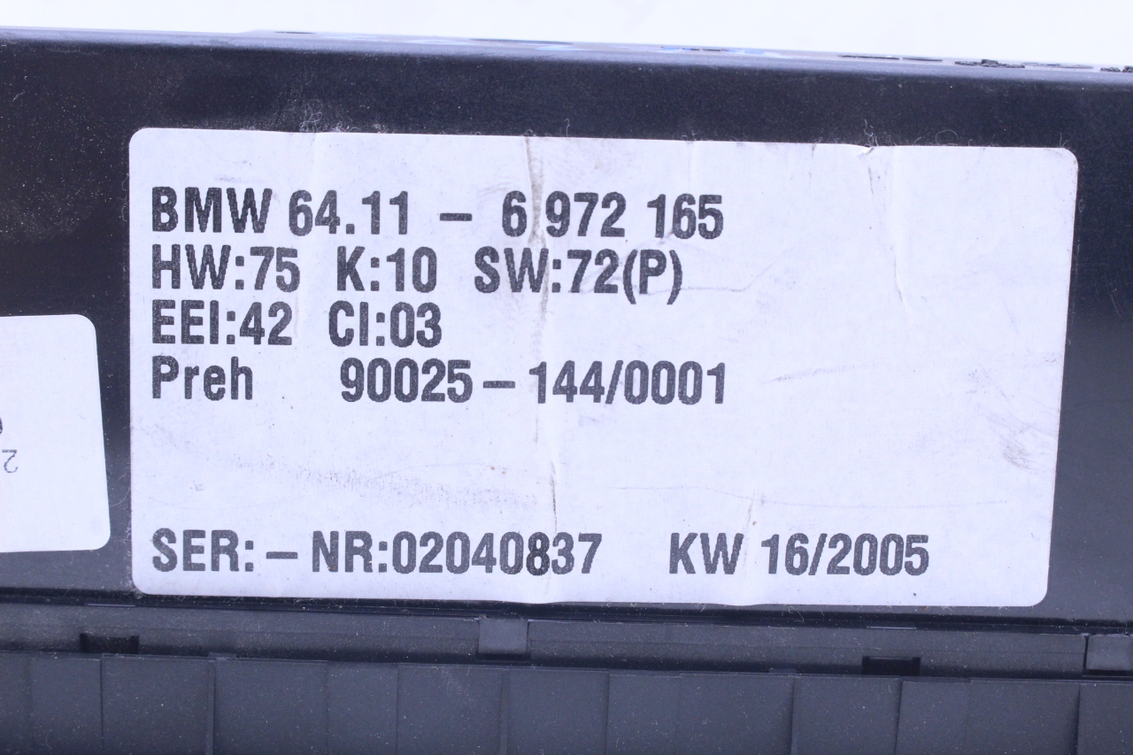 Specialized German is proud to offer this genuine used OEM 2005 BMW Temperature Control Panel with OEM part number 64116972165. Other possible part numbers include 6972165. Please verify compatibility with your VIN or consult your technician before purchase.