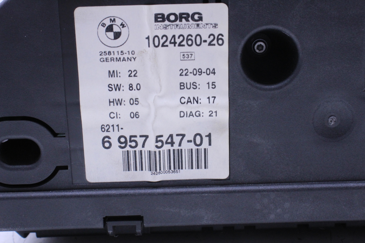 Specialized German is proud to offer this genuine used OEM 2005 BMW Speedometer with OEM part number 62116957547. Other possible part numbers include 6957547. Please verify compatibility with your VIN or consult your technician before purchase.