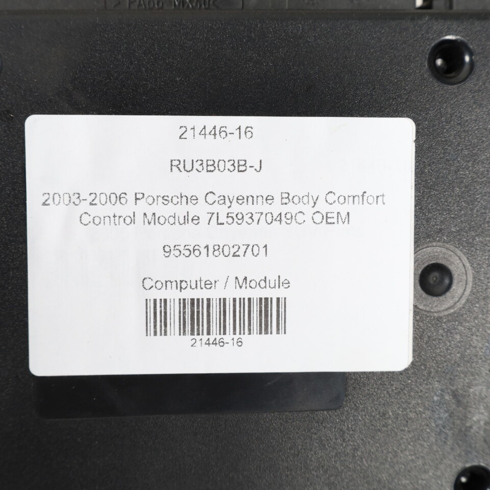 Specialized German is proud to offer this genuine used OEM 2005 Porsche Body Control Module with OEM part number 95561802701. Other possible part numbers include 7L5937049C; 7L5937049D; 95561802701. Please verify compatibility with your VIN or consult your technician before purchase.