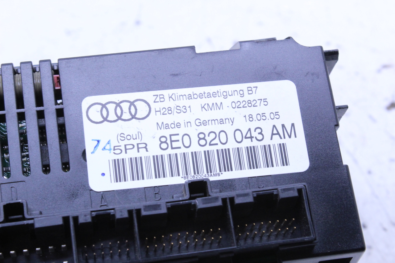 Specialized German is proud to offer this genuine used OEM 2006 Audi Temperature Control Panel with OEM part number 8E0820043AM. Other possible part numbers include 8E0820043AM. Please verify compatibility with your VIN or consult your technician before purchase.
