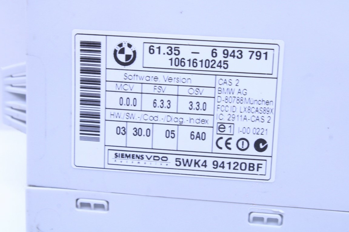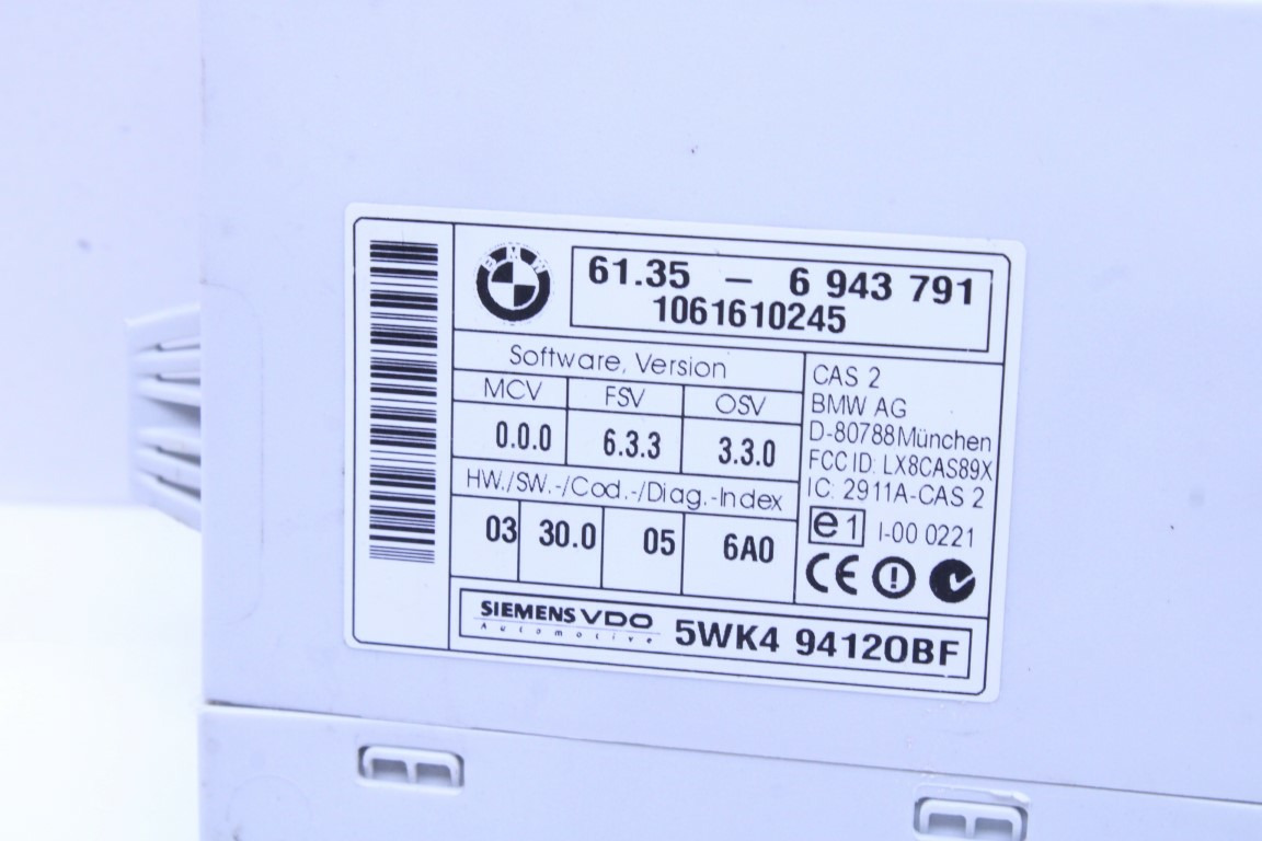 Specialized German is proud to offer this genuine used OEM 2006 BMW Comfort Access Module with OEM part number 61356943791. Other possible part numbers include 6943791; 61356943791; 61356943797; 61356981416. Please verify compatibility with your VIN or consult your technician before purchase.