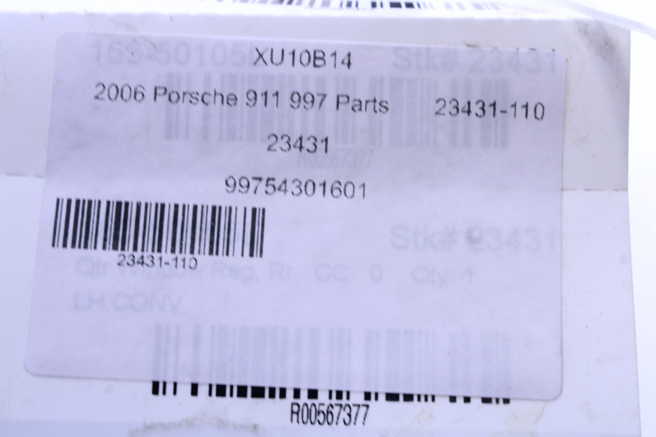 Specialized German is proud to offer this genuine used OEM 2006 Porsche Quarter Window Regulator with OEM part number 99754301501. Other possible part numbers include 99754301500; 99754301501; 99754301502; 99754301505. Please verify compatibility with your VIN or consult your technician before purchase.