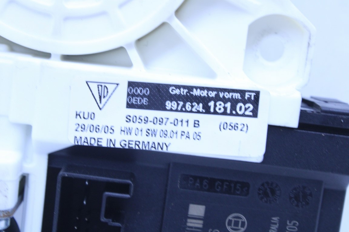 Specialized German is proud to offer this genuine used OEM 2006 Porsche Power Window Motor with OEM part number 99762418102. Other possible part numbers include 99762418102; 99762418103; 99762418104; 99762418105; 99762418106. Please verify compatibility with your VIN or consult your technician before purchase.