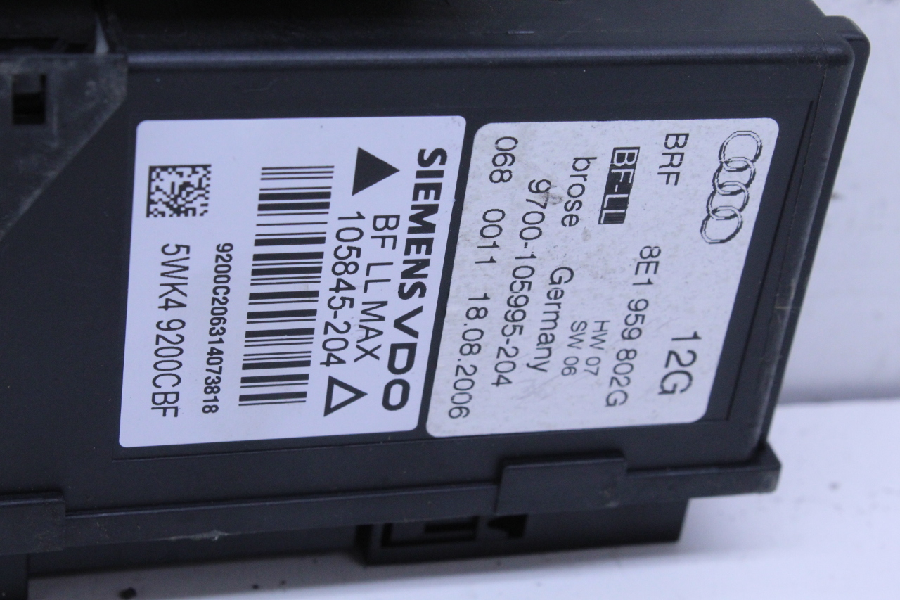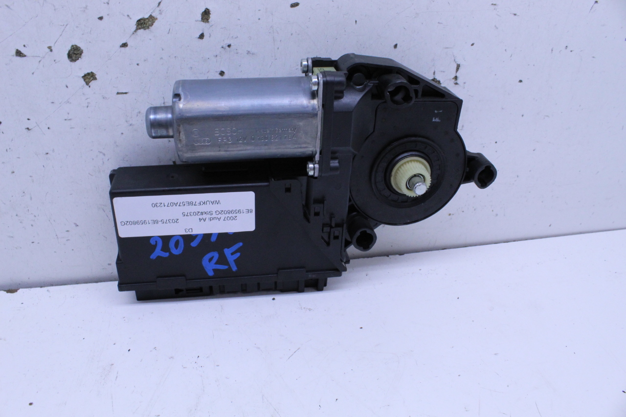 Specialized German is proud to offer this genuine used OEM 2007 Audi Power Window Motor with OEM part number 8E1959802G. Other possible part numbers include 8E1959802; 8E1959802E; 8E1959802F. Please verify compatibility with your VIN or consult your technician before purchase.