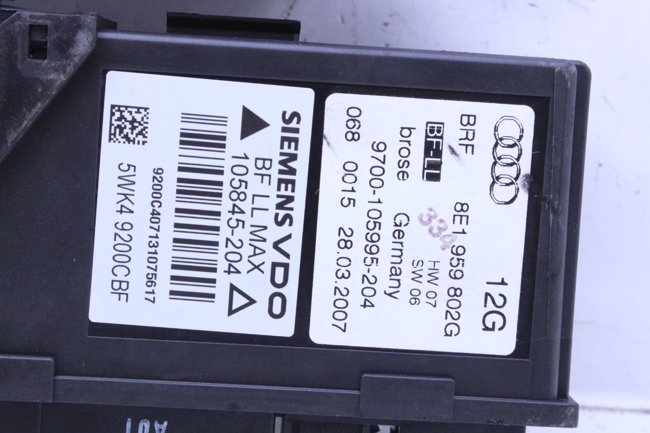 Specialized German is proud to offer this genuine used OEM 2007 Audi Power Window Motor with OEM part number 8E1959802G. Other possible part numbers include 8E1959802; 8E1959802E; 8E1959802F. Please verify compatibility with your VIN or consult your technician before purchase.