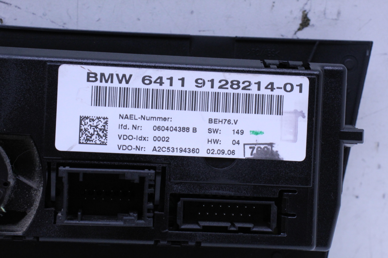 Specialized German is proud to offer this genuine used OEM 2007 BMW Temperature Control Panel with OEM part number 64119128214. Other possible part numbers include 9128214; 64119128214; 64119286618. Please verify compatibility with your VIN or consult your technician before purchase.