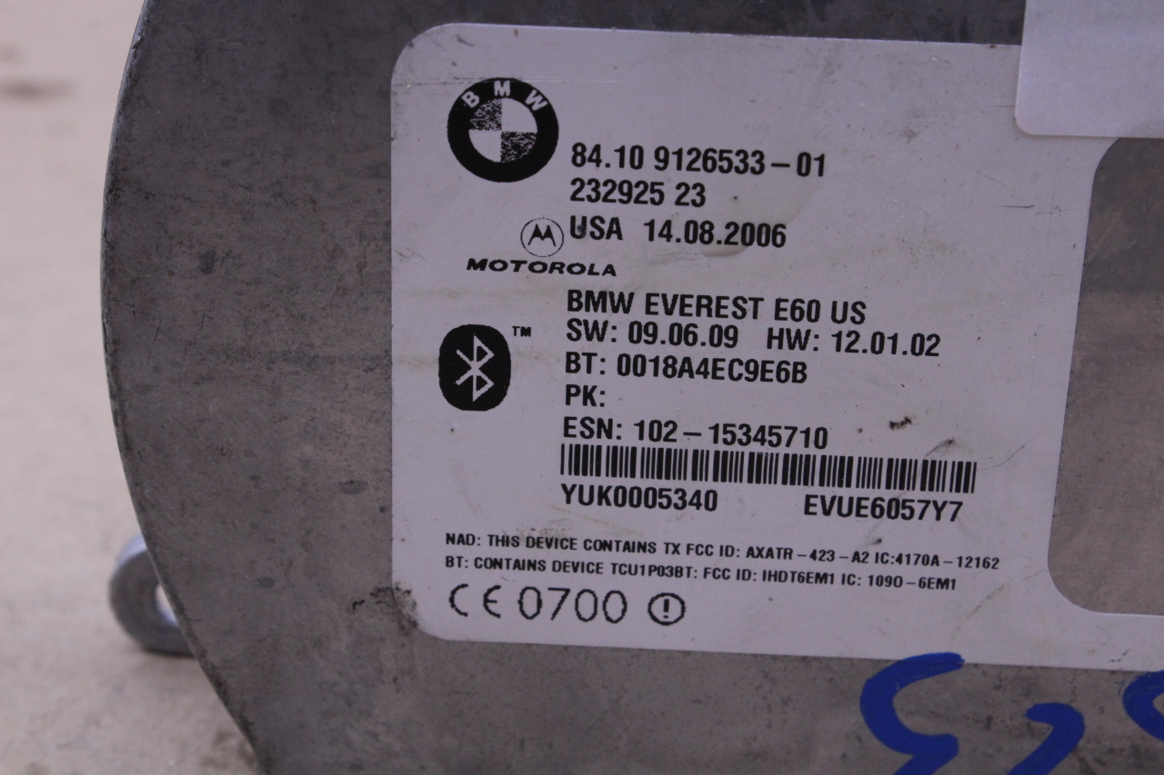 Specialized German is proud to offer this genuine used OEM 2007 BMW Telematics control unit with OEM part number 84109126533. Other possible part numbers include 9126533; 84109126533; 84109171348. Please verify compatibility with your VIN or consult your technician before purchase.