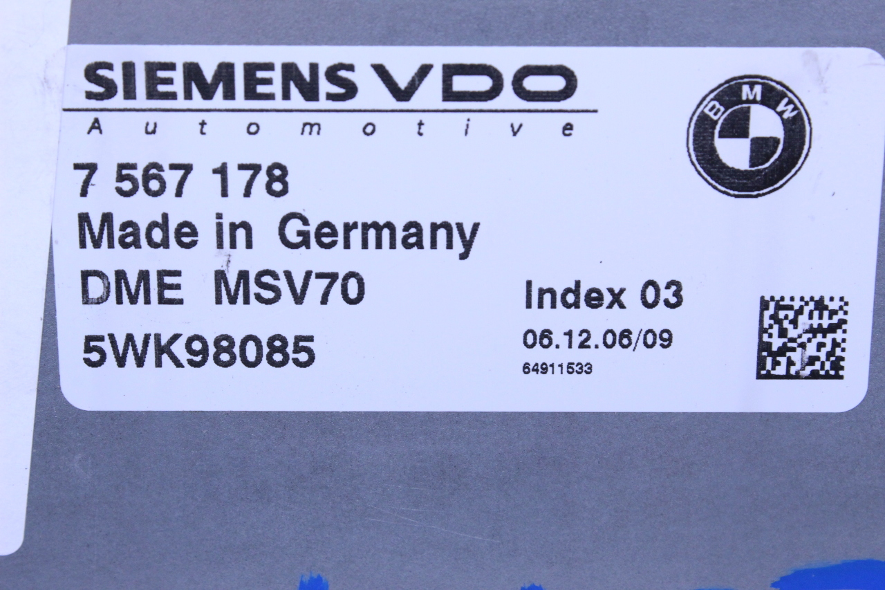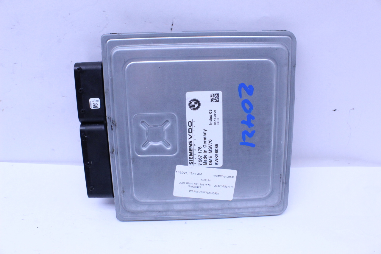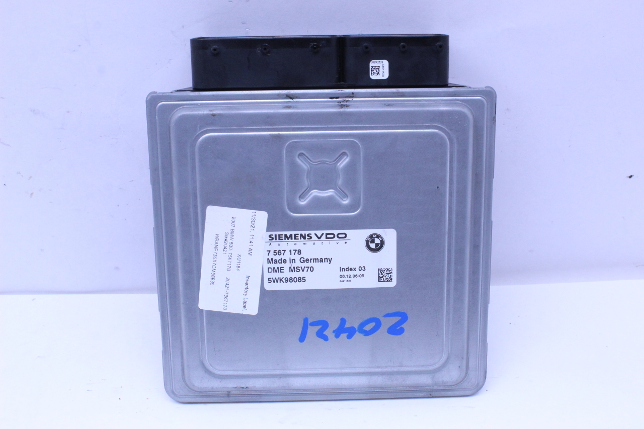 Specialized German is proud to offer this genuine used OEM 2007 BMW Engine Computer Module with OEM part number 12147567178. Other possible part numbers include 7567178; 12147567178; 7577968; 12147577968. Please verify compatibility with your VIN or consult your technician before purchase.