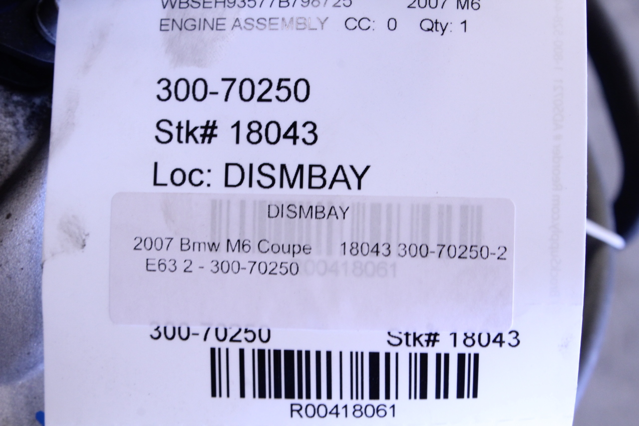2006-2010 BMW M5 M6 Engine S85 Motor - 11000433598 OEM