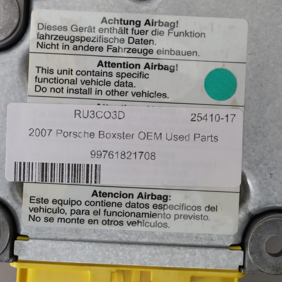 2006-2012 Porsche 911 Boxster Cayman Airbag Computer 99761821708 OEM Used