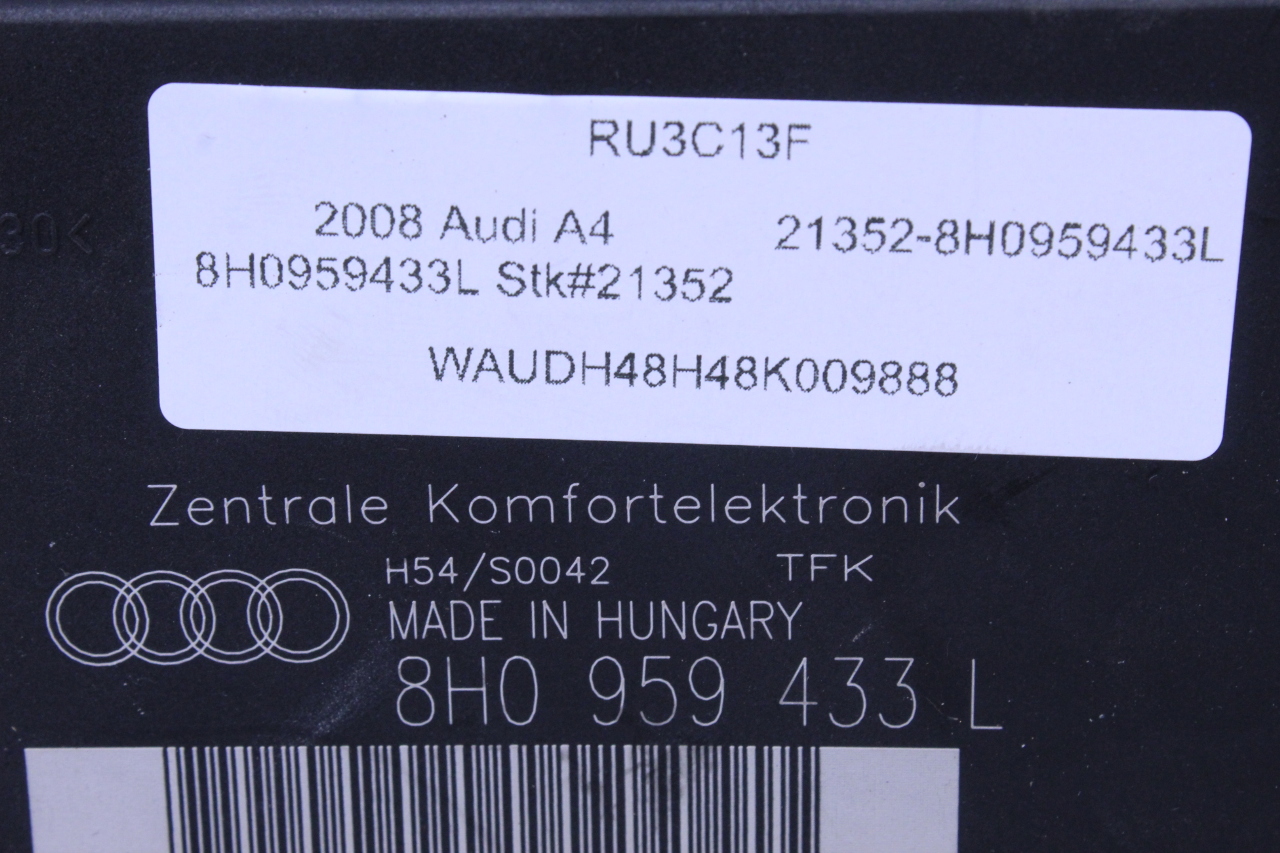 2005 2006 2007 2008 Audi A4 S4 Cabriolet Comfort Control Control Module CCM 8H0959433L OEM