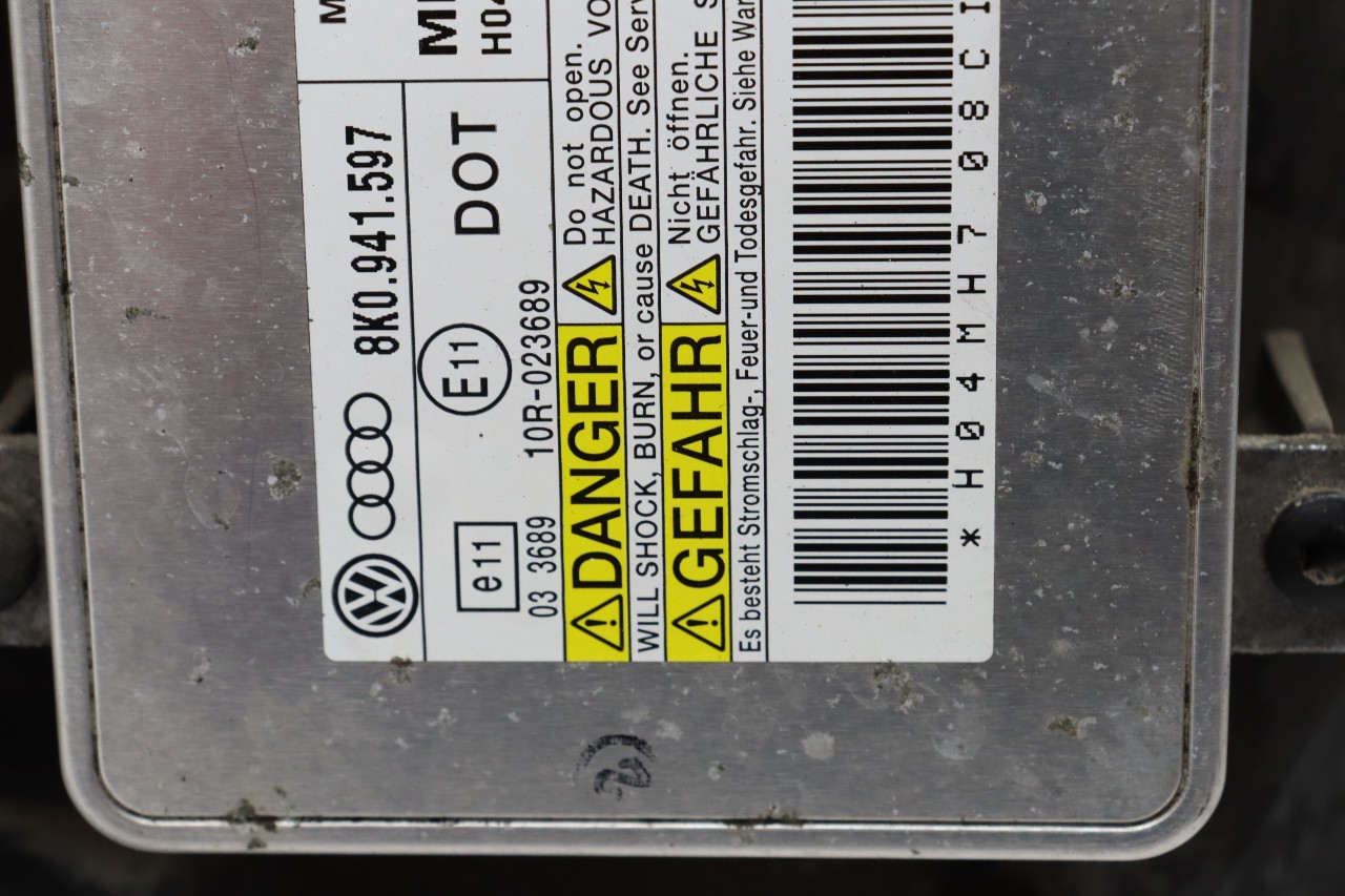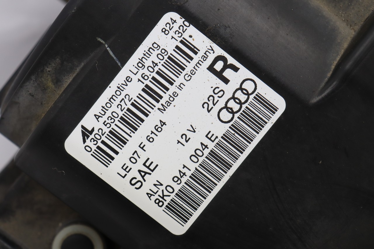 Specialized German is proud to offer this genuine used OEM 2009 Audi Headlight with OEM part number 8K0941030E. Other possible part numbers include 8K0941030AL; 8K0941004E; 8K0941030AA; 8K0941030R. Please verify compatibility with your VIN or consult your technician before purchase.