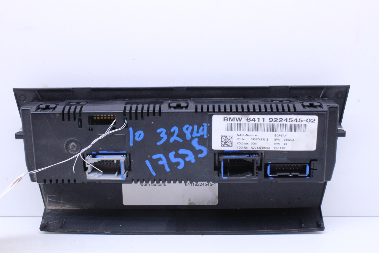 Specialized German is proud to offer this genuine used OEM 2010 BMW Temperature Control Panel with OEM part number 64119224545. Other possible part numbers include 9224545; 64119224545. Please verify compatibility with your VIN or consult your technician before purchase.
