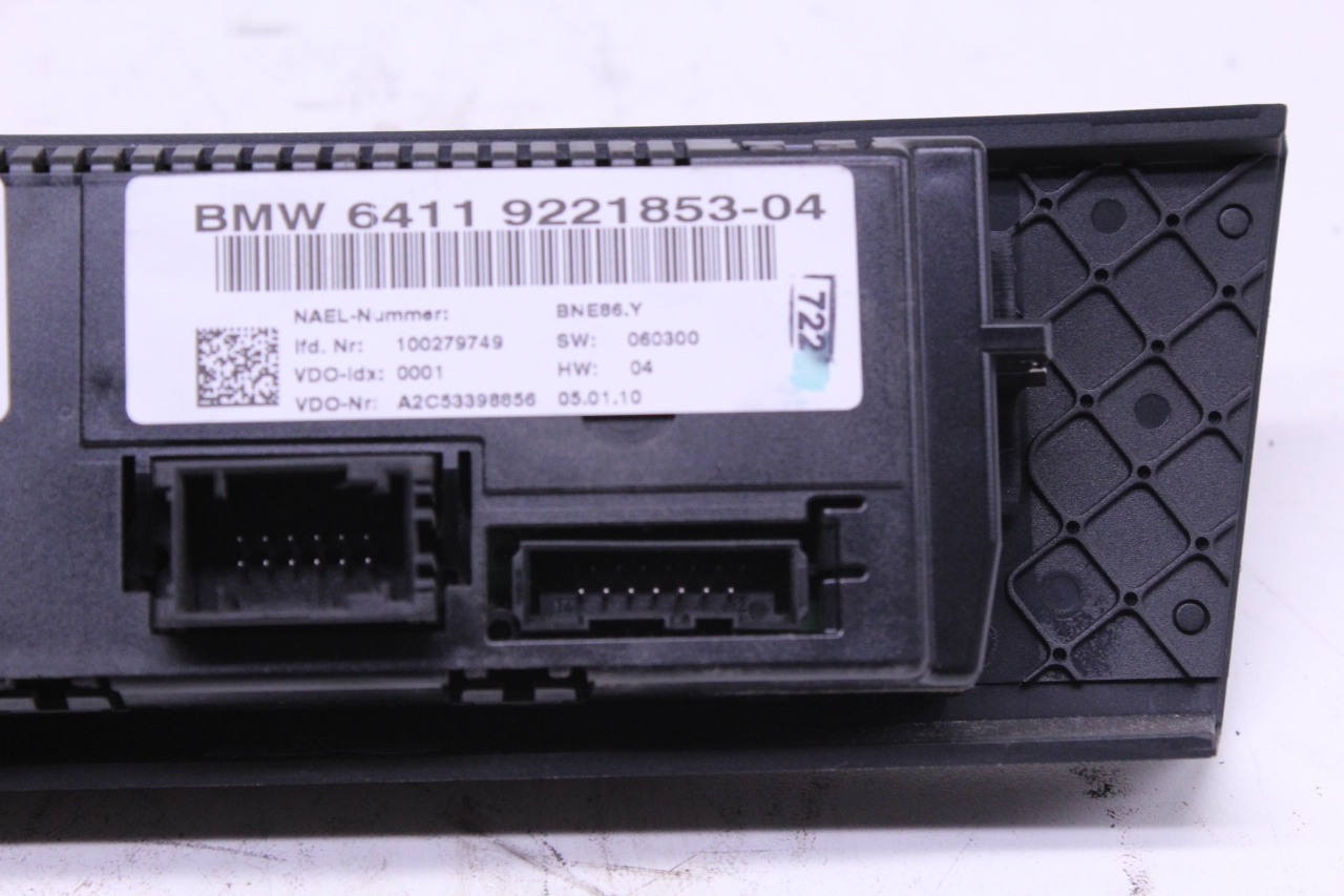 Specialized German is proud to offer this genuine used OEM 2010 BMW Temperature Control Panel with OEM part number 64119221853. Other possible part numbers include 9221853; 64119221853. Please verify compatibility with your VIN or consult your technician before purchase.