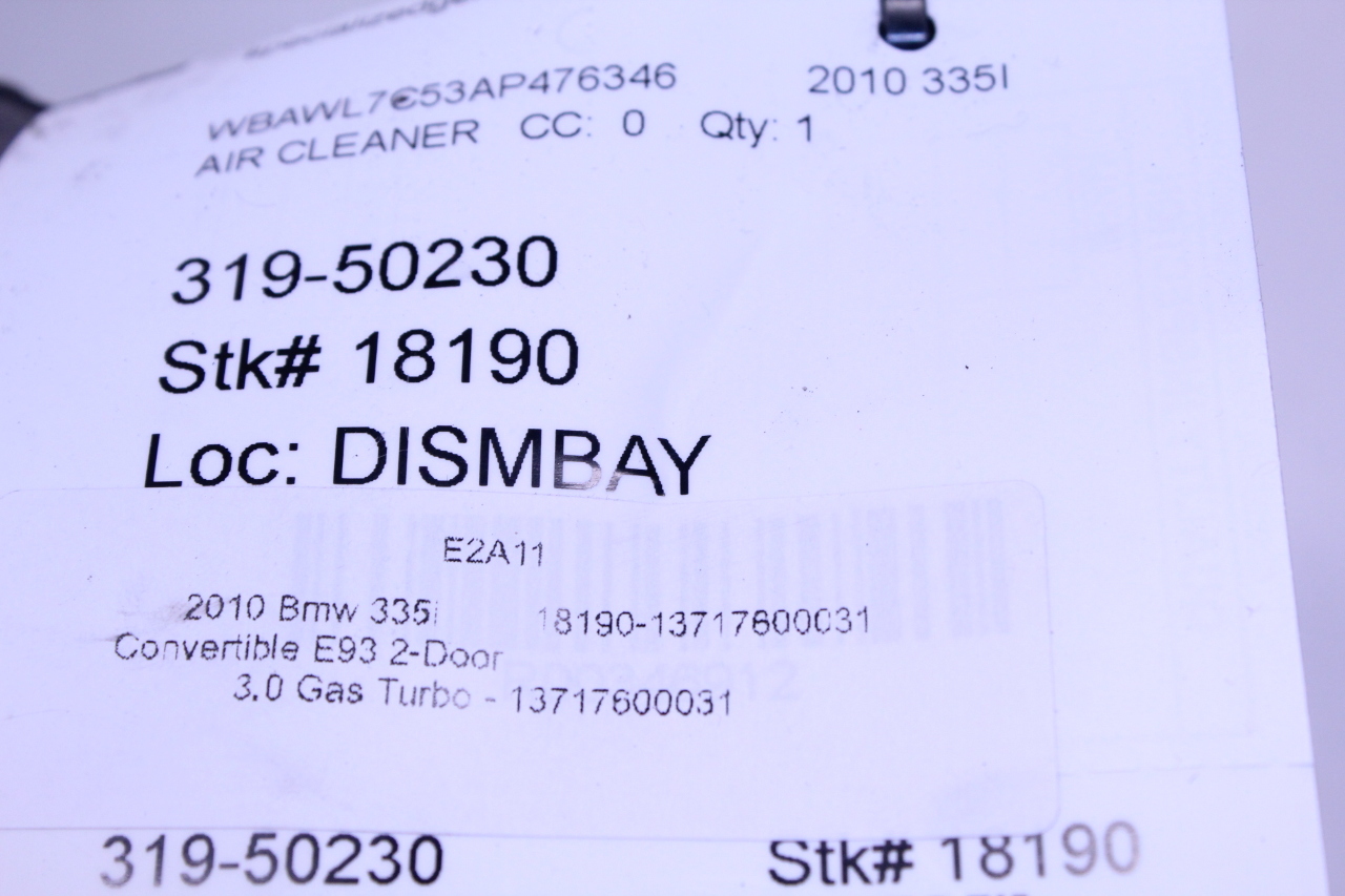 Specialized German is proud to offer this genuine used OEM 2010 BMW Air Filter Housing with OEM part number 13717600031. Other possible part numbers include 7600031. Please verify compatibility with your VIN or consult your technician before purchase.
