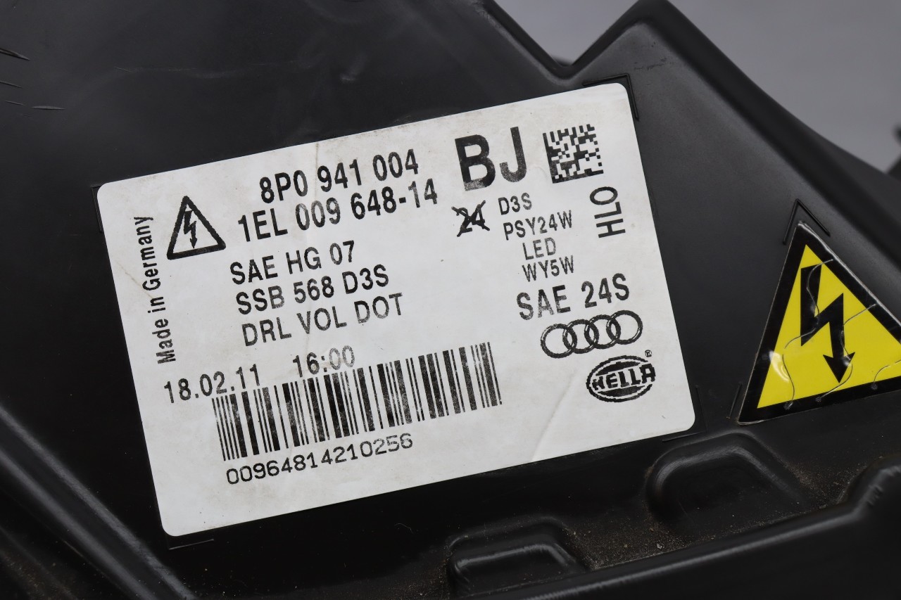 Specialized German is proud to offer this genuine used OEM 2011 Audi Headlight with OEM part number 8P0941004BJ.