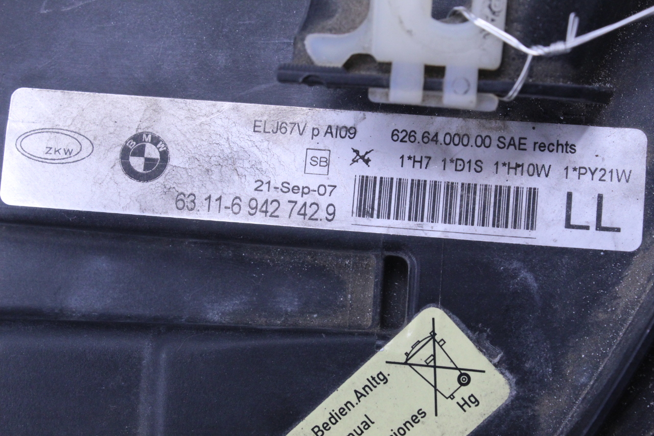 Specialized German is proud to offer this genuine used OEM 2007 BMW Headlight with OEM part number 63117161670. Other possible part numbers include 7161670; 63116942742; 6942742. Please verify compatibility with your VIN or consult your technician before purchase.