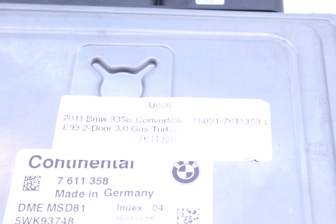 Specialized German is proud to offer this genuine used OEM 2011 BMW Engine Computer Module with OEM part number 12147611358. Other possible part numbers include 7611358. Please verify compatibility with your VIN or consult your technician before purchase.