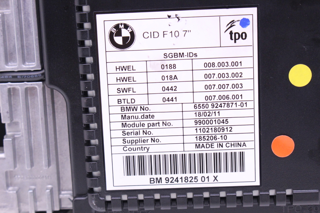 Specialized German is proud to offer this genuine used OEM 2011 BMW Display Monitor Screen with OEM part number 65509241825. Other possible part numbers include 9241825. Please verify compatibility with your VIN or consult your technician before purchase.