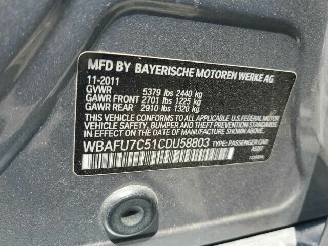 • VIN #: WBAFU7C51CDU58803